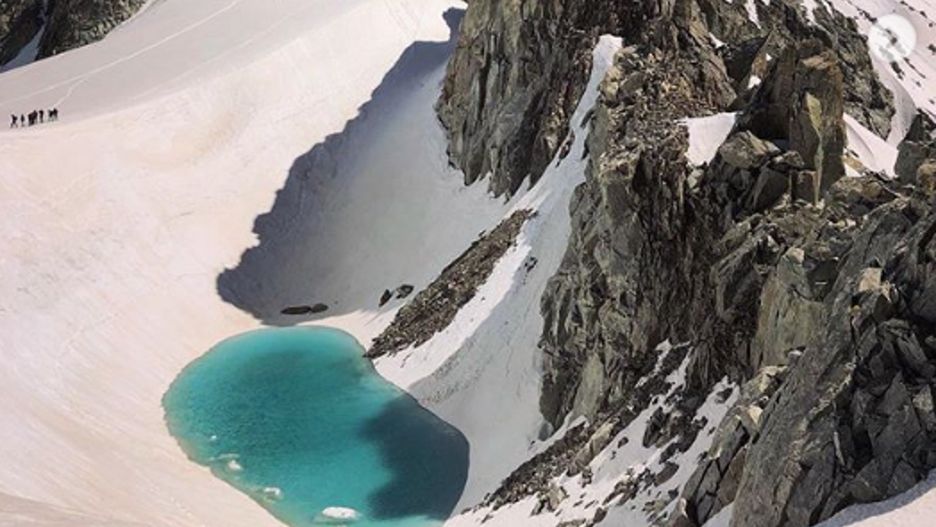 Alpinista Bryan Mestre zamieścił w mediach społecznościowych zdjęcie nowo powstałego jeziora. - Nie ma wątpliwości, że to alarmujący znak - przyznał Mestre. Śnieg stopił się podczas fali intensywnych upałów, które ogarnęły Europę pod koniec czerwca.