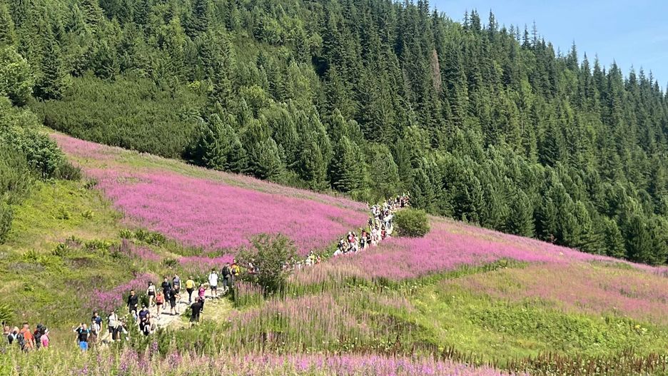 Wierzbówka kiprzyca na Hali Gąsienicowej prezentuje się równie spektakularnie, jak krokusy w Dolinie Chochołowskiej. Jej fioletowo-różowe kwiaty tworzą imponujące dywany, które przyciągają tłumy turystów i fotografów. - To zjawisko trwa krótko, najwyżej dwa tygodnie, dlatego warto się pospieszyć - powiedział Tomasz Zając, przewodnik tatrzański i edukator Tatrzańskiego Parku Narodowego.