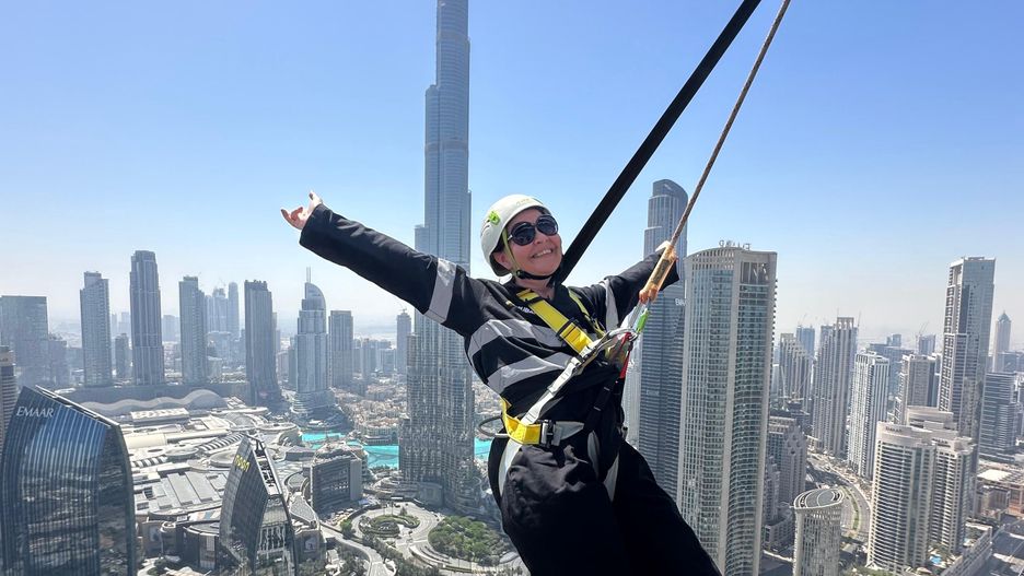 Zanim jednak mogłam ten krok zrobić, musiałam włożyć odpowiedni strój, wypełnić kilka dokumentów, włącznie ze wskazaniem osoby do kontaktu w razie, gdybym uległa wypadkowi i przejść krótkie szkolenie. Najpierw jednak musiałam wjechać na 53. piętro Sky View Hotel w dzielnicy Downtown w Dubaju, co dzięki naprawdę szybkiej windzie trwało dosłownie kilka sekund.