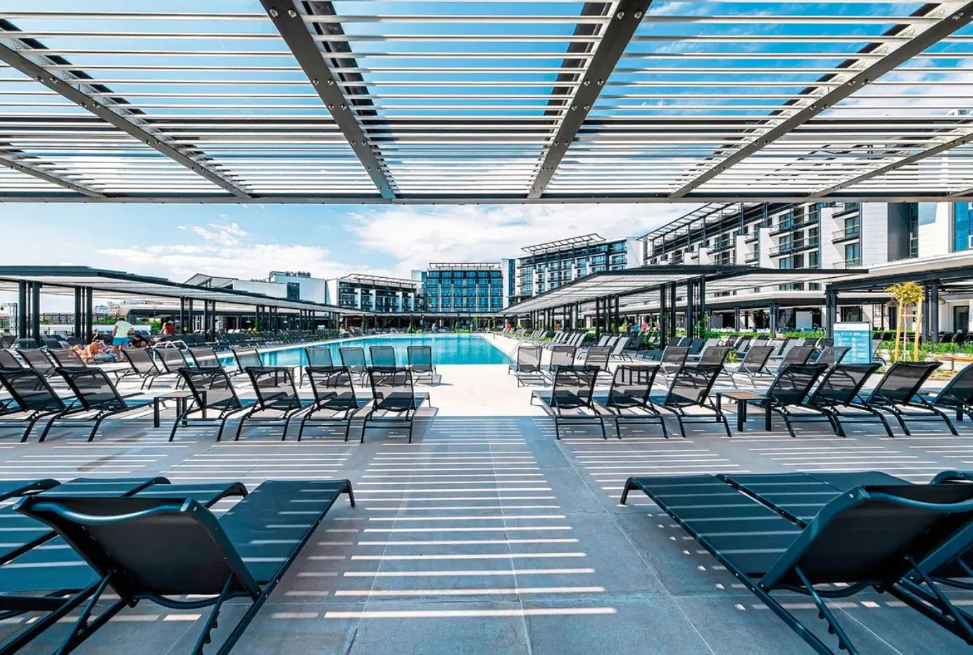 Kolejna nowość to ukończony w 2019 r. hotel Wave Resort, który oczywiście również może pochwalić się pięcioma gwiazdkami, a także ciekawym rozplanowaniem basenów i atrakcji. Miejsce ma bogatą ofertę zajęć sportowych, takich jak windsurfing, pływanie na skuterach wodnych, studio fitness i aerobik, a nawet żeglowanie. Strefa spa & wellness obejmuje nie tylko saunę, łaźnię parową i łaźnię turecką, ale także salon piękności i zabiegi terapeutyczno-lecznicze. Plaża znajduje się tuż przy hotelu, a goście mają do dyspozycji bezpłatne parasole oraz leżaki.