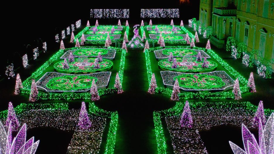 Królewski Ogród Światła przy pałacu w Wilanowie to wystawa plenerowa, w ramach której tysiące kolorowych diod ułożone są w różne, czasem bardzo wymyślne kształty.