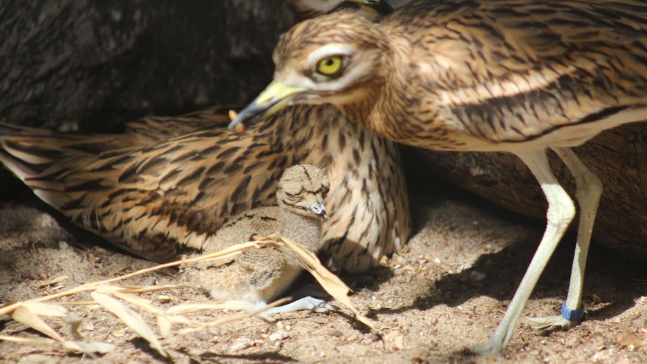 Od tygodnia para kulonów w ptaszarni warszawskiego zoo opiekuje się swoim świeżo wyklutym potomstwem. Pisklę rośnie szybko, a jego upierzenie doskonale wtapia się w otoczenie, co sprawia, że wielu zwiedzających go nie zauważa.