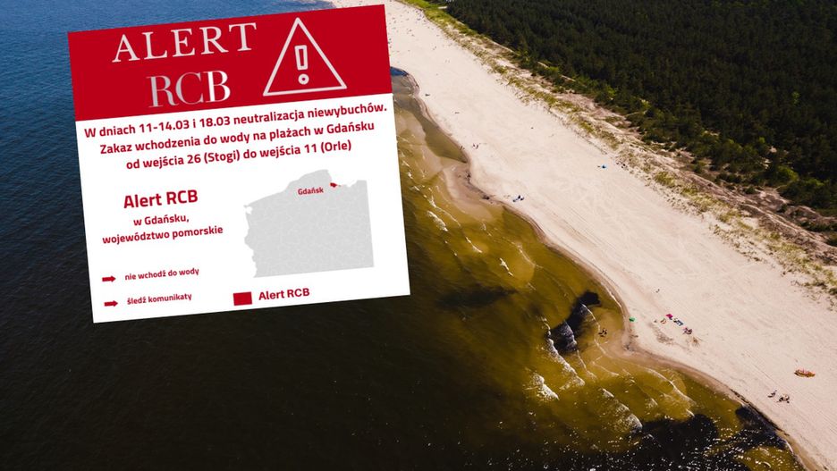 Mieszkańcy, a także osoby przebywające obecnie w Gdańsku i okolicach, otrzymali 10 marca alert RCB dotyczący zakazu wchodzenia do wody na plażach na sporym odcinku wybrzeża. Wszystko z powodu neutralizacji niewybuchu.