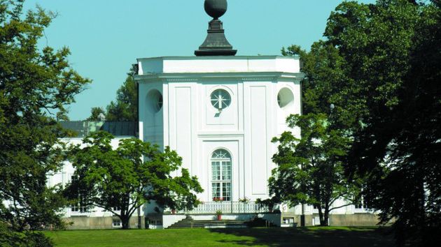 Letni dwór biskupów płockich istniał tu już w XVI wieku, ale dopiero po 1774 roku powstała przepiękna klasycystyczna rezydencja wzniesiona przez Domnika Merliniego dla biskupa Michała Jerzego Poniatowskiego. Po śmierci biskupa kilka lat mieszkał w pałacu książę Józef Poniatowski. Rozbudowy pałacu dokonał Henryk Marconi na zlecenie Anny z Tyszkiewiczów primo voto Potockiej, secundo Dunin-Wąsowiczowej, inicjatorki przebudowy Natolina (patrz s. 93). W otoczeniu pałacu zachowały się oficyny, a w rozległym krajobrazowym parku założonym przez Szymona Bogumiła Zuga kilka pawilonów – oranżeria, altana chińska i łuk triumfalny. Do pałacu wiedzie brama ujęta w gotyckie kolumny z Malborka. Pałac należy do Polskiej Akademii Nauk.