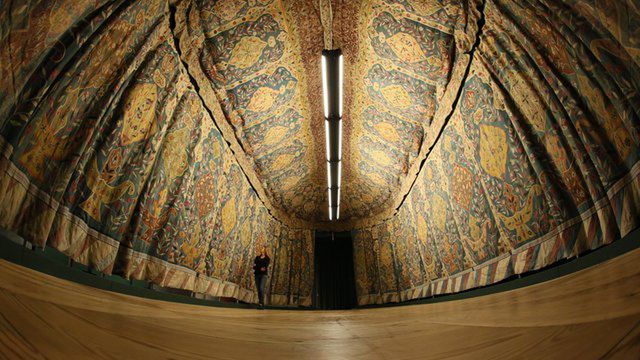 Historyk sztuki i znawczyni tkanin zabytkowych dr Magdalena Piwocka podkreśliła, że cechą szczególną namiotu jest jego kolor oraz teksty błogosławieństw. "We wszystkich zbiorach światowych, łącznie ze Stambułem dominują namioty czerwone, bo był to kolor sułtański. Pod względem ozdobności ten namiot plasuje się w czołówce światowych zbiorów. Wyjątkowe są teksty błogosławieństw, które witały wchodzących" - mówiła dr Piwocka.