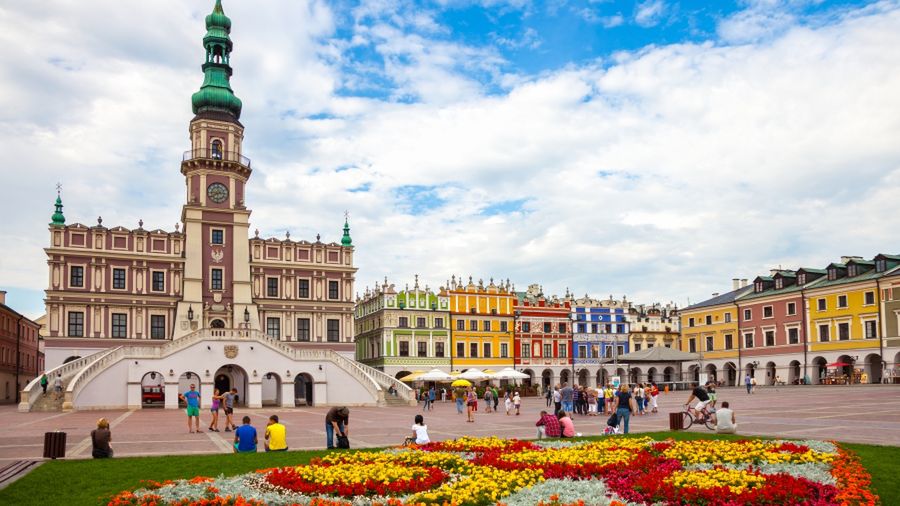 Jeśli chcemy zerknąć na dawne miasto z góry, jego makietę znajdziemy w Muzeum Zamojskim. Łatwo je znaleźć, mieści się w zespole kamienic mieszczańskich wzniesionych w XVII wieku w północnej pierzei Rynku Wielkiego. Miasto w obecnej formie również podziwiać można z lotu ptaka, choć trzeba w to włożyć nieco wysiłku. Trud wspinania się na balkon XVIII-wiecznej dzwonnicy przy Katedrze Zamojskiej w pełni wynagrodzą widoki. Właśnie stąd można podziwiać kolorowe kamienice, mieniący się w słońcu ratusz i przepięknie odnowione mury obronne.