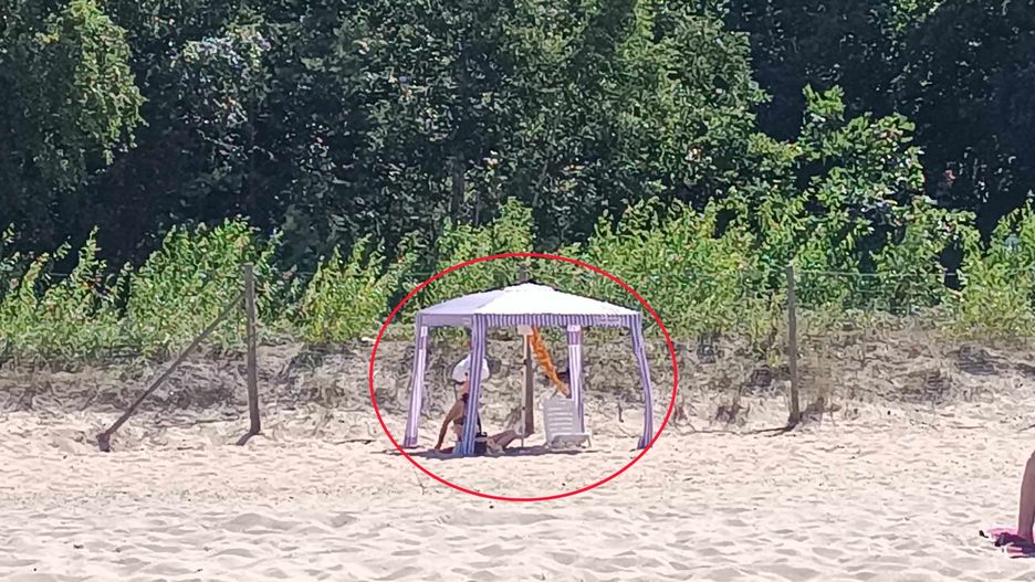 Jeden z namiotów, rozłożony na gdańskiej plaży, szczególnie zwrócił uwagę przebywających tam turystów. Mowa o wysokim namiocie, przypominającym te, które sprzedawcy rozstawiają na targach i bazarach. Wielu turystów przyglądało mu się i pokazywało na niego palcami.